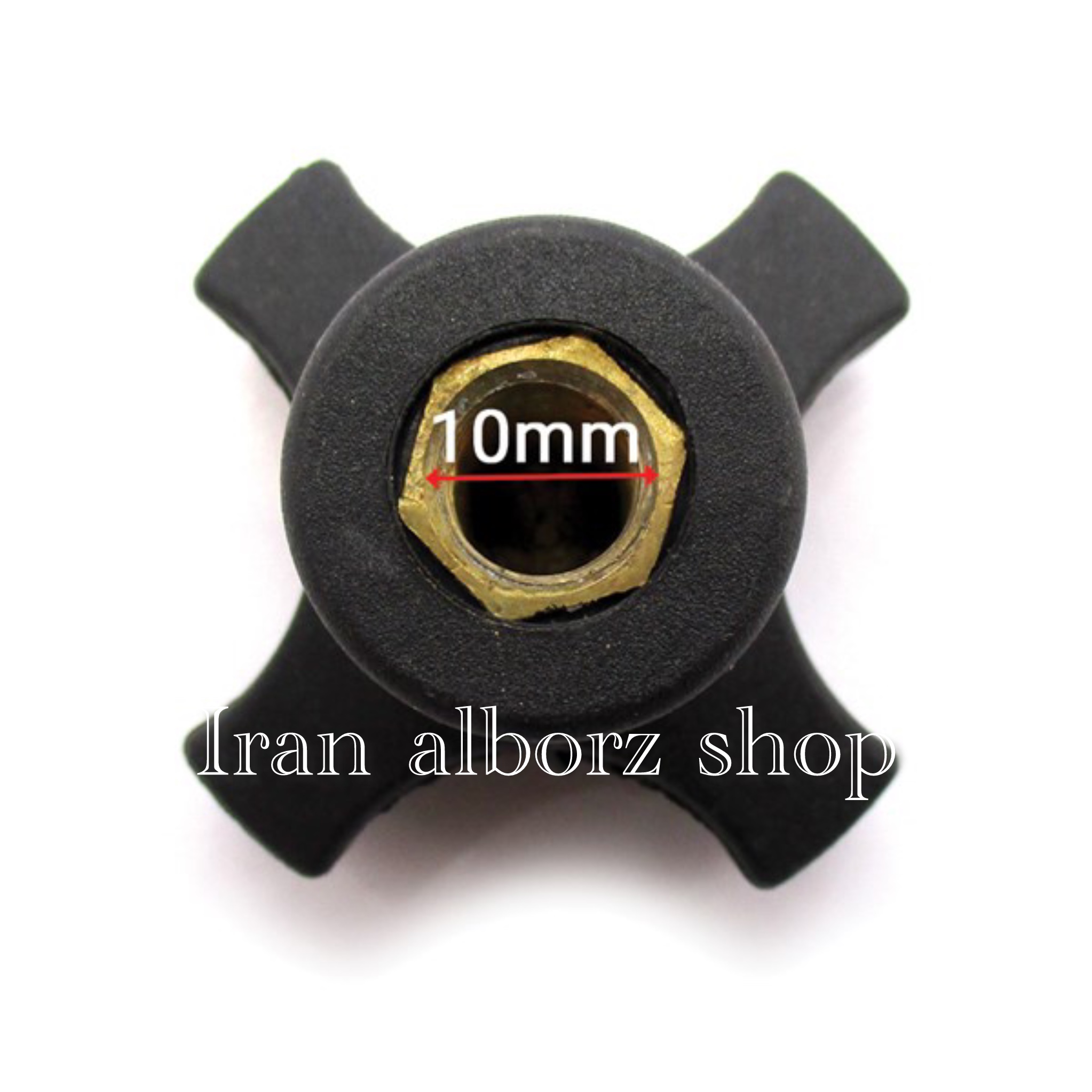 گل مهره آهنی قطعهای است که به وسیلهی آن میتوانید بسیاری از ابزارآلات مورد نیاز برای دستگاه دورکن را به راحتی نصب نمایید. این نوع گل مهره دارای سریه دالبری میباشد که به شما این امکان را میدهد تا بتوانید به راحتی با دست خود آن را بچرخانید و باز و بسته نمایید. در انتهای این نوع گل مهره، حفرهای رزوه دار به قطر 10 میلیمتر وجود دارد.