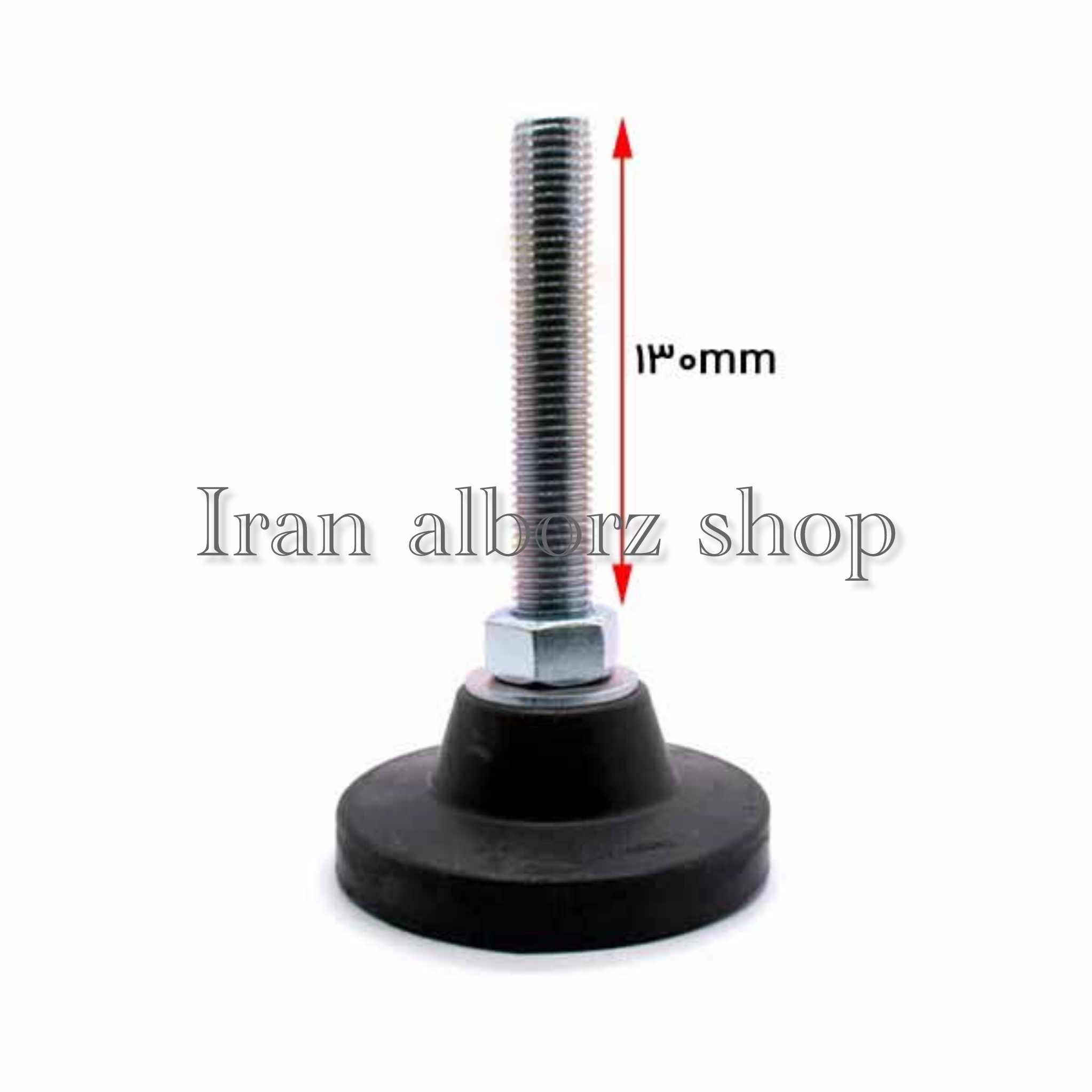 پایه ضربه گیر نیکل کروم کف پلاستیکی m20 قطر 134 طول پیچ 120میلیمتر کد 00202176