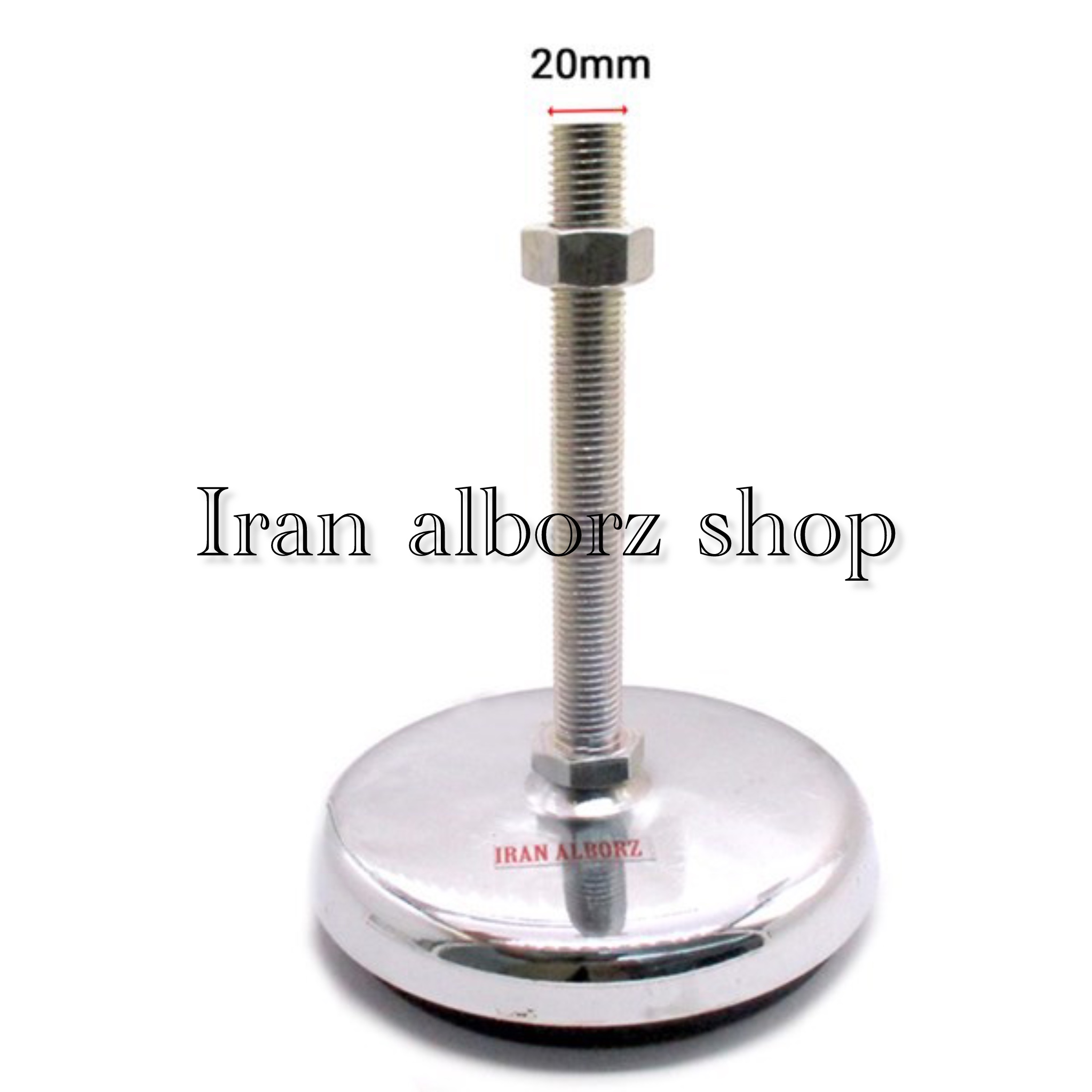پایه ضربه گیر نیکل کروم کف پلاستیکی m20 قطر 165 طول پیچ 120 میلیمتر کد 00202189